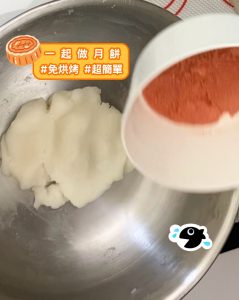 ● 製作重點:這次使用草莓、芒果色素粉,建議分次加入,慢慢調成喜歡的顏色,如直接使用食用色素調整,顏色會較飽和喔!